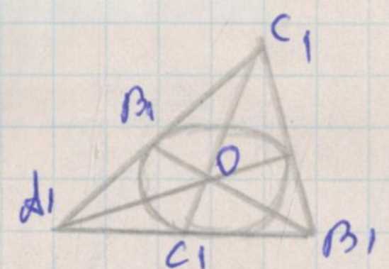 Поскольку треугольник \(A_1B_1C_1\) подобен \(ABC\), центр вписанной окружности треугольника \(ABC\) соответствует точке \(O\) — пересечению биссектрис в треугольнике \(A_1B_1C_1\).