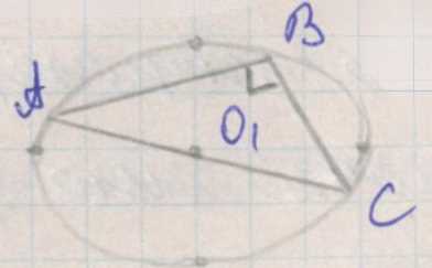 6. Центр эллипса \(O_1\) является проекцией центра окружности \(O\), следовательно, свойства вписанного треугольника сохраняются.