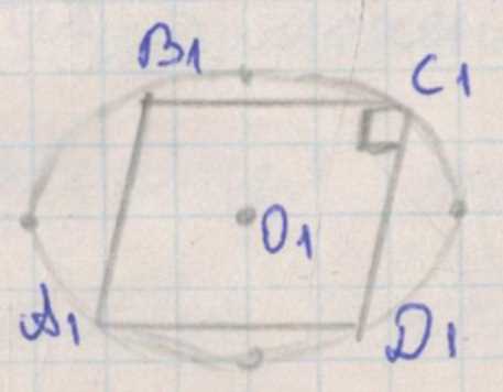 Для построения изображения прямоугольника нужно: выбрать четыре точки на эллипсе \( A_1, B_1, C_1, D_1 \), соответствующие вершинам прямоугольника, так чтобы угол \( \angle C_1D_1 \) был прямым.