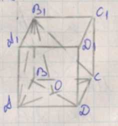 1. Пусть ребро куба равно \(a\). Введём координаты: \(A(0,0,0)\), \(B(a,0,0)\), \(C(a,a,0)\), \(D(0,a,0)\), \(A_1(0,0,a)\), \(B_1(a,0,a)\), \(C_1(a,a,a)\), \(D_1(0,a,a)\).