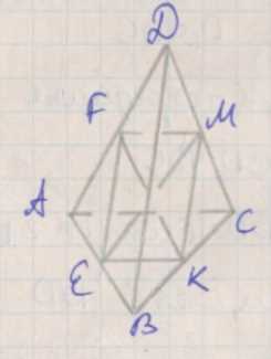 Точки М и N середины соответственно рёбер AC и BD тетраэдра DABC. Найдите угол между прямыми MN и ВС, если известно, что ВС = AD, а угол между прямыми ВС и AD равен 30°.
