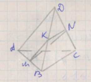 Все рёбра тетраэдра DABC равны. Точки М и N середины рёбер АВ и CD соответственно. Найдите угол между прямыми MN и ВС.
