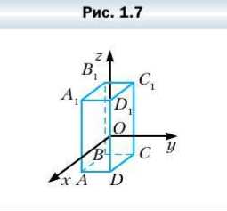 Боковые рёбра прямоугольного параллелепипеда \(ABCDA_1B_1C_1D_1\) параллельны оси аппликат (рис. 1.7), \(AD = 3\), \(AB = 5\), \(AA_1 = 8\). Начало координат, точка \(O\), является серединой ребра \(DD_1\). Найдите координаты вершин параллелепипеда.