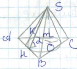 В треугольнике \(NKO\) по определению синуса двугранного угла: \(\sin \alpha = \frac{m}{OH}\), откуда \(OH = \frac{m}{\sin \alpha}\).