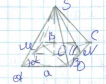 Основание пирамиды — ромб со стороной \(a\) и углом \(\alpha\).