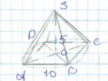 Высота пирамиды \(SO = 5\) см.