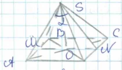 Так как основание — квадрат, то треугольник \(SDC\) равносторонний, значит угол при вершине \(S\) равен 60 градусов.