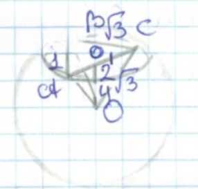 Точка \(O_1\) — это середина отрезка \(AC\), следовательно, длина отрезка \(AO_1\) равна половине длины \(AC\), то есть \(AO_1 = \frac{1}{2} AC = \frac{1}{2} \times 3 = 1.5\) см. Однако в решении на фото используется значение \(AO_1 = 1\), что предполагает, что длина \(AC\) равна 2, а не 3, или что рассматривается другой масштаб. В любом случае, \(O_1\) лежит в плоскости треугольника и служит проекцией центра сферы на эту плоскость.