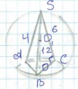 Боковые рёбра треугольной пирамиды равны 4 см, 6 см и 12 см, и при вершине пирамиды все плоские углы прямые. Это означает, что ребра, исходящие из вершины, взаимно перпендикулярны, и можно рассматривать их как три измерения прямоугольного параллелепипеда. Чтобы найти радиус описанной сферы, нужно определить длину диагонали этого параллелепипеда, так как описанная сфера касается всех вершин, а её радиус равен половине длины диагонали.