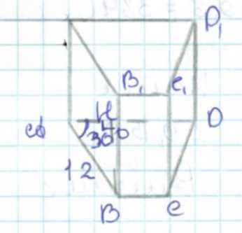 Основание призмы — прямоугольная трапеция с большой боковой стороной 12 см и острым углом 30°.