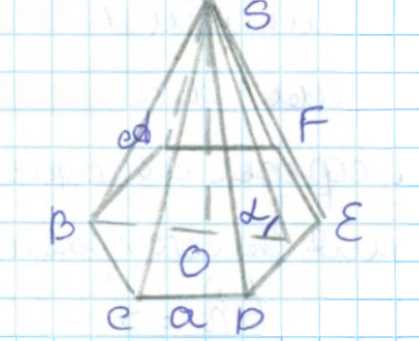 2. Чтобы найти \( SO \), рассмотрим треугольник \( SOE \), где \( E \) — точка на основании, а \( SO \) — высота пирамиды. В этом треугольнике тангенс угла \( \alpha \) равен отношению \( \frac{SO}{a} \), то есть \( \tan \alpha = \frac{SO}{a} \). Отсюда выражаем \( SO = a \tan \alpha \).