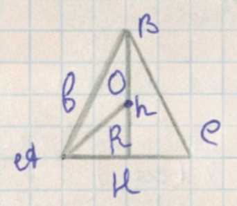 Рассмотрим треугольник, образованный высотой и радиусом описанной сферы.