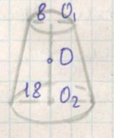 Радиусы оснований усечённого конуса равны 8 см и 18 см.
