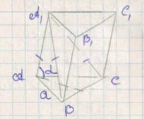 Высота призмы может быть выражена через длину ребра и угол \(\alpha\). Если длина ребра равна \( a \), то высота \( h = a \tan \alpha \). Это связано с тем, что угол \(\alpha\) — это угол между ребром и плоскостью основания, а высота — это проекция ребра на перпендикуляр к плоскости. Таким образом, используя тригонометрию, высота равна произведению длины ребра на тангенс угла \(\alpha\).