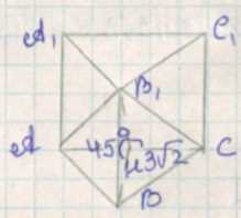 Площадь основания правильного треугольника со стороной \(a\) равна \( S = \frac{a^2 \sqrt{3}}{4} \). Из условия и рисунка следует, что площадь основания равна 24 см². Тогда объём призмы равен произведению площади основания на высоту: \( V = S \cdot h = 24 \cdot 3\sqrt{2} = 72\sqrt{2} \) см³.