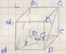 Основание призмы — ромб с диагоналями 8 и \(4\sqrt{5}\). Площадь основания \(S = \frac{1}{2} \times 8 \times 4\sqrt{5} = 16\sqrt{5}\).