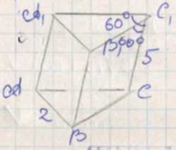 Основанием наклонной призмы является правильный треугольник со стороной 2 см. Боковое ребро призмы равно 5 см и образует с двумя соседними сторонами основания углы по 60°. Найдите объём призмы.