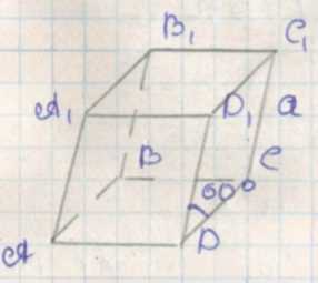 Объём параллелепипеда равен произведению площади основания на высоту. Основание — квадрат со стороной \(a\), значит площадь основания \(a^2\). Высота равна стороне ромба, умноженной на синус угла между сторонами, то есть \(a \cdot \sin 45^\circ = a \frac{\sqrt{2}}{2}\). Тогда объём равен \(a^2 \cdot a \frac{\sqrt{2}}{2} = \frac{a^3 \sqrt{2}}{2}\).