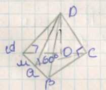 Высоту пирамиды \(DO\) находим через тангенс угла 60°: \(\tan 60^\circ = \frac{DO}{\frac{a \sqrt{3}}{6}}\), откуда \(DO = \frac{a}{2}\).