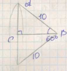 \( \cos 60^\circ = \frac{BC}{10} \Rightarrow BC = 10 \cdot \frac{1}{2} = 5 \) см