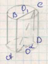 Плоскость, параллельная оси цилиндра, отсекает от окружности дугу с углом \(\alpha\). Это означает, что длина дуги на основании равна \(r \alpha\) (если угол в радианах). Диагональ сечения образует с осью цилиндра угол \(\beta\) и находится на расстоянии \(d\) от оси. Расстояние \(d\) — это перпендикуляр от оси цилиндра до диагонали сечения. Так как плоскость параллельна оси, то расстояние \(d\) связано с радиусом и углом \(\alpha\) через тригонометрическую зависимость: \(r = \frac{d}{\cos \frac{\alpha}{2}}\). Это следует из того, что диагональ проходит на расстоянии \(d\) от оси, а угол дуги \(\alpha\) делит основание на два равных угла по \(\frac{\alpha}{2}\).