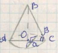 В основании конуса дана хорда длины \(a\), которая стягивает дугу с градусной мерой \(\alpha\), где \(0^\circ < \alpha < 180^\circ\). Для начала найдем радиус основания конуса \(r\). Поскольку хорда \(a\) стягивает дугу \(\alpha\), то по свойствам окружности длина хорды связана с радиусом и углом дуги формулой \(a = 2r \sin \frac{\alpha}{2}\). Отсюда выразим радиус: \(r = \frac{a}{2 \sin \frac{\alpha}{2}}\).