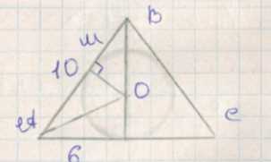 Радиус основания конуса равен 6 см, а его образующая – 10 см. Найдите объём шара, вписанного в данный конус.