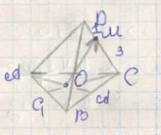В тетраэдре \(DABC\) точка \(O\) — это точка пересечения медиан грани \(ABC\). Медианы треугольника пересекаются в его центре тяжести, который делит каждую медиану в отношении \(2:1\), считая от вершины. Пусть \(E\) — середина \(AB\), тогда медиана \(CE\) пересекается с другими медианами в точке \(O\). Координаты точки \(O\) можно выразить через координаты вершин \(A\), \(B\) и \(C\) как \(O = \frac{1}{3}(A + B + C)\).