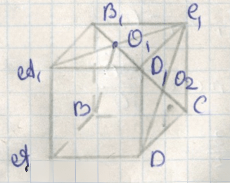 1. Пусть ребро куба равно 1. Зададим координаты вершин куба: \(A(0,0,0)\), \(B(1,0,0)\), \(C(1,1,0)\), \(D(0,1,0)\), \(A_1(0,0,1)\), \(B_1(1,0,1)\), \(C_1(1,1,1)\), \(D_1(0,1,1)\).