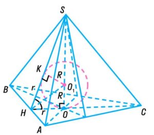 Далее рассмотрим треугольник \(\triangle SOH\). Центр шара \(O_1\) лежит на биссектрисе угла \(SHO\), а отрезок \(O_1K\) перпендикулярен \(SH\). По свойствам треугольника и шара: