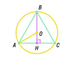 1. Рассмотрим треугольник \( ABC \), описанный около окружности с центром \( O \) и радиусом \( x \). По условию, \( x = OA = OB \), так как \( O \) — центр окружности, а \( A \) и \( B \) — точки на окружности. Высота \( BH \) проведена из вершины \( B \) на основание \( AC \), причем \( H \) — точка пересечения высоты с основанием. Для нахождения радиуса \( x \) воспользуемся прямоугольным треугольником \( ABH \), в котором известен угол \( \alpha = \angle BAH \).
