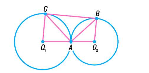 Теперь обратимся к треугольнику \( O_1CA \). Стороны \( O_1C \) и \( O_1A \) равны, так как это радиусы окружности с центром в \( O_1 \). Следовательно, треугольник \( O_1CA \) равнобедренный, и углы при основании равны. Угол \( \angle O_1CA \) равен углу \( \angle O_1AC \), и их значение можно найти, поделив оставшийся угол треугольника на два: \( \angle O_1CA = \angle O_1AC = \frac{180^\circ — 2x}{2} = 90^\circ — x \).