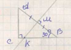 Серединный перпендикуляр к \( AB \) проходит через \( M \) и пересекает \( BC \) в точке \( K \). В треугольнике \( BKC \), угол \( B = 30^\circ \), а \( MK \) — медиана, проведённая из вершины \( K \) к стороне \( BC \). По свойству медианы в прямоугольном треугольнике, медиана, проведённая к стороне, равной половине гипотенузы, равна половине этой стороны. В данном случае, \( BK = BC \cdot \frac{2}{3} \), следовательно, \( MK = \frac{1}{2} BK = \frac{1}{2} \cdot BC \cdot \frac{2}{3} = BC \cdot \frac{1}{3} \).