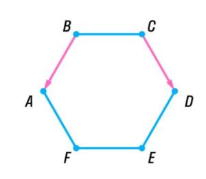 1) Рассмотрим векторы \(\overrightarrow{BA}\) и \(\overrightarrow{CD}\) в правильном шестиугольнике со стороной 1. Поскольку шестиугольник правильный, все его стороны равны 1, а углы между соседними сторонами равны 120°. Вектор \(\overrightarrow{BA}\) направлен от точки B к точке A, а вектор \(\overrightarrow{CD}\) — от точки C к точке D. Чтобы найти скалярное произведение этих векторов, нужно знать длины векторов и угол между ними.