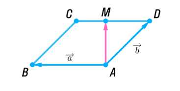 Вектор \( \vec{DC} \) направлен от \( D \) к \( C \). Поскольку \( ABCD \) — параллелограмм, векторы \( \vec{DC} \) и \( \vec{AB} \) равны по величине и направлены одинаково, то есть \( \vec{DC} = \vec{AB} = \vec{d} \). Подставляя это в выражение для \( \vec{AM} \), получаем \( \vec{AM} = \vec{b} + \frac{3}{5} \vec{d} \). Таким образом, вектор \( \vec{AM} \) выражается через векторы сторон параллелограмма.