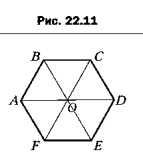 Точка \(O\) – центр правильного шестиугольника \(ABCDEF\), изображённого на рисунке 22.11. Укажите образ стороны \(CD\) при повороте вокруг точки \(O\) по часовой стрелке на угол \(120^\circ\).