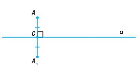 Для начала построим точку \( A_1 \), которая является симметричным образом точки \( A \) относительно прямой \( a \). Это означает, что прямая \( a \) является серединным перпендикуляром отрезка \( A A_1 \), то есть точка \( C \) — середина отрезка \( A A_1 \), а угол при \( C \) прямой к \( a \) равен 90 градусам. Таким образом, расстояния \( A C \) и \( A_1 C \) равны, а прямая \( a \) разделяет отрезок \( A A_1 \) на две равные части под прямым углом.