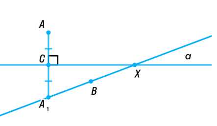 Из равенства \( A X = A_1 X \) и свойства серединного перпендикуляра следует, что отрезок \( X C \) является одновременно высотой, медианой и биссектрисой треугольника \( \triangle A A_1 X \). Это и доказывает, что точка \( X \) обладает всеми нужными геометрическими свойствами, которые требовалось показать. Если же точки \( A_1 \) и \( B \) совпадают, то прямая \( A_1 B \) вырождается в точку, и в этом случае любую точку на прямой \( a \) можно рассматривать как искомую точку \( X \). Если же прямая \( A_1 B \) параллельна прямой \( a \), то задача не имеет решений, так как они не пересекаются.
