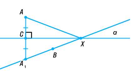 Точки \(A\) и \(B\) лежат в различных полуплоскостях относительно прямой \(a\). На прямой \(a\) найдите такую точку \(X\), чтобы прямая \(a\) содержала биссектрису угла \(AXB\).