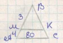 Прямая, параллельная стороне АС треугольника АВС, пересекает его сторону АВ в точке М, а сторону ВС — в точке К. Найдите площадь треугольника АВС, если ВМ = 3 см, АМ = 4 см, а площадь четырёхугольника АМКС равна 80 см².