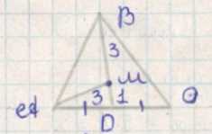 Так как \(BM : MD = 3 : 1\), то вся медиана \(BD = BM + MD = 3x + x = 4x\).