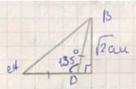 Для начала определим угол \(BDC\). По рисунку видно, что угол \(BDC = 180^\circ — 135^\circ = 45^\circ\). Так как треугольник содержит угол \(45^\circ\), а сторона \(BC\) равна \(\sqrt{2}\) см, то по теореме косинусов можно найти сторону \(DC\). Но на рисунке уже указано, что \(DC = \sqrt{2}\) см.