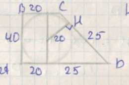 Обозначим высоту трапеции \(CH = 20\) см, боковую сторону \(BC = 25\) см, а меньшую сторону \(AD = 40\) см.