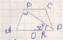 Рассмотрим равнобокую трапецию, у которой диагональ \(BD\) перпендикулярна боковой стороне и образует с основанием угол 30°. Трапеция описана около окружности с радиусом \(R\). Нужно найти площадь \(S\) этой трапеции.