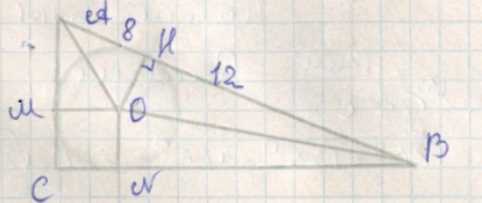 Дано: гипотенуза разделена точкой касания на отрезки 8 см и 12 см.