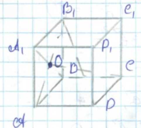 Точка \(O\) — центр грани \(AA_1B_1B\), значит \(O\) имеет координаты \(\left(\frac{1}{2}, 0, \frac{1}{2}\right)\).