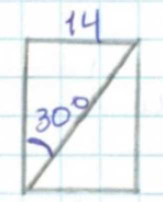 \(\frac{\sqrt{3}}{3} = \frac{14}{h} \Rightarrow h = \frac{14 \cdot 3}{\sqrt{3}} = 14\sqrt{3}\) см.