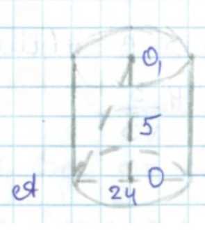 Дано цилиндр, высота которого составляет \(5\) см, а диаметр основания равен \(24\) см. Необходимо найти расстояние от центра одного основания до точки окружности другого основания. Для этого рассмотрим сечение цилиндра, проходящее через его ось и точку окружности противоположного основания. В этом сечении образуется прямоугольный треугольник, где один катет равен высоте цилиндра (\(5\) см), а другой катет равен радиусу основания (\(\frac{24}{2} = 12\) см).