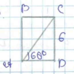 Рассмотрим осевое сечение цилиндра, проходящее через центр основания и высоту. Диагональ этого прямоугольника — это отрезок, соединяющий две противоположные точки на окружностях основания, и её длина совпадает с диагональю квадрата основания призмы, то есть \(a\sqrt{2}\). Из условия задачи известно, что эта диагональ образует угол \(60^\circ\) с плоскостью основания. В треугольнике, где один катет — высота цилиндра \(h = 6\), а другой катет — диагональ основания \(a\sqrt{2}\), тангенс угла между диагональю и основанием равен отношению высоты к диагонали: \(\tan 60^\circ = \frac{6}{a\sqrt{2}}\).