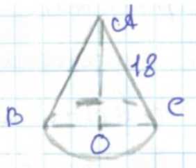 Сторона треугольника \(AB = AC = BC = 18\) см, значит радиус основания \(OC = \frac{18}{2} = 9\) см.
